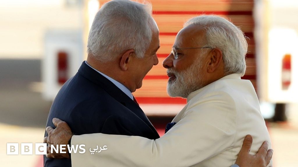 العدو للعرب والمسلمين نندرا مودي يزور اخيه المجرم عدو الله ياتنياهو ويعانقه بحرارة مودي المجرم يزور ياتنياهو المجرم المطلوب للقضاء الدولي الذي تدعي الهند عضويتها فيه على جرائم الحرب ضد الإنسانية إذن مودي مع الإجرام والمجرمين الصهاينة والهندوس من مشكاة واحدة