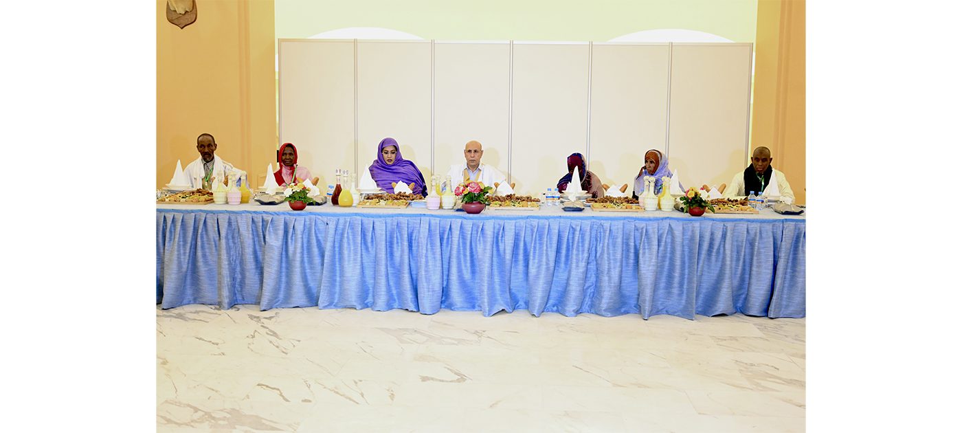 أقام رئيس الجمهورية، السيد محمد ولد الشيخ الغزواني، مساء اليوم الخميس بجناح الضيافة بالقصر الرئاسي في نواكشوط، حفل إفطار على شرف 126 شخصا ممثلين لمجتمع التآزر الذي يضم الأسر المتعففة التي استفادت من مختلف المشاريع والخدمات المتعددة التي نفذتها المندوبية العامة للتضامن الوطني ومكافلة الإقصاء (تآزر) منذ إنشائها أواخر سنة 2019 وحتى اليوم.